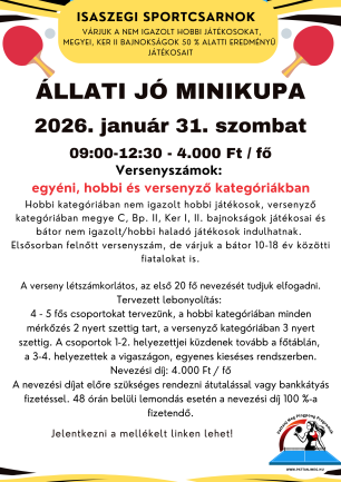létszámkorlátos, az első 30 fő nevezését tudjuk elfogadni, melyről visszaigazolást küldünk.