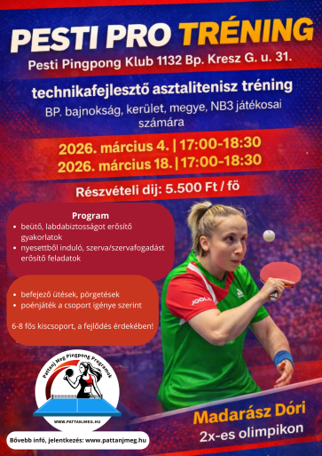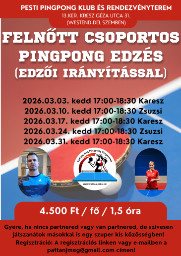 Helyszín: Pesti Pingpong Klub 13. ker. Kresz Géza utca 31. (Westend mellett)
