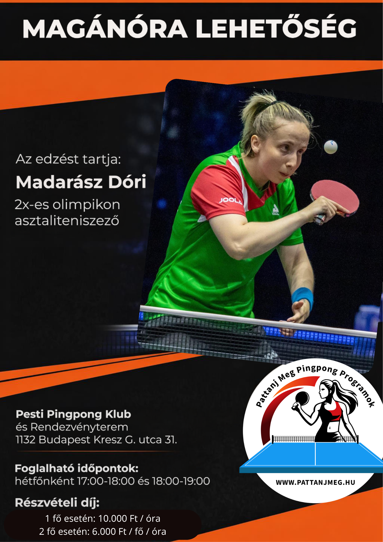 Ha szeretnéd fejleszteni meglévő tudásod vagy még sosem pingpongoztál, de szeretnél megtanulni, várunk szeretettel magánóráinkon.